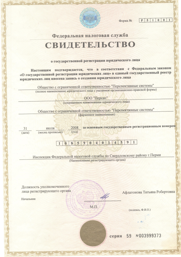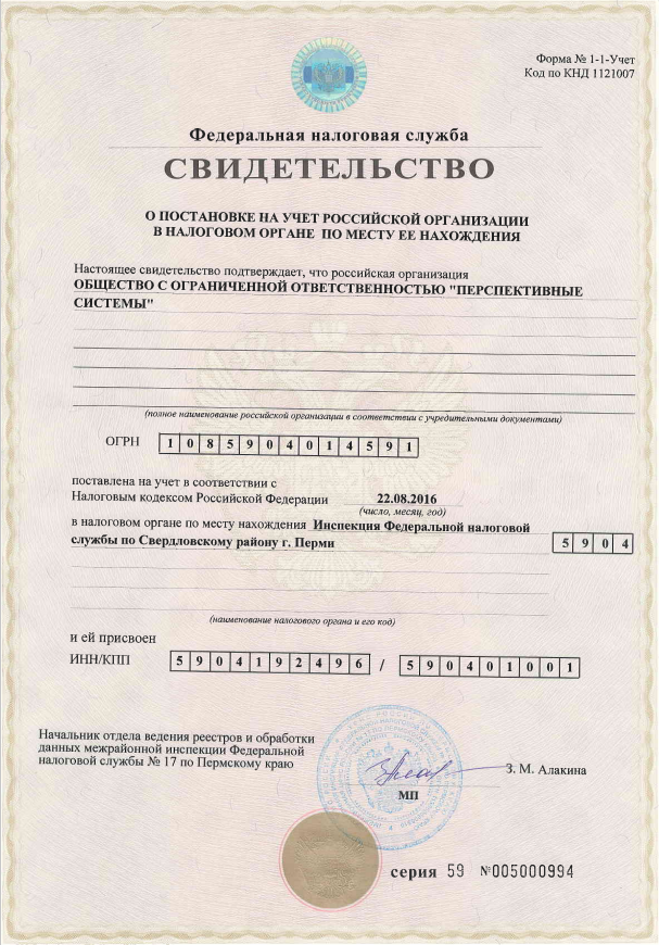 | Полное наименование организации | Общество с ограниченной ответственностью «Перспективные системы» |