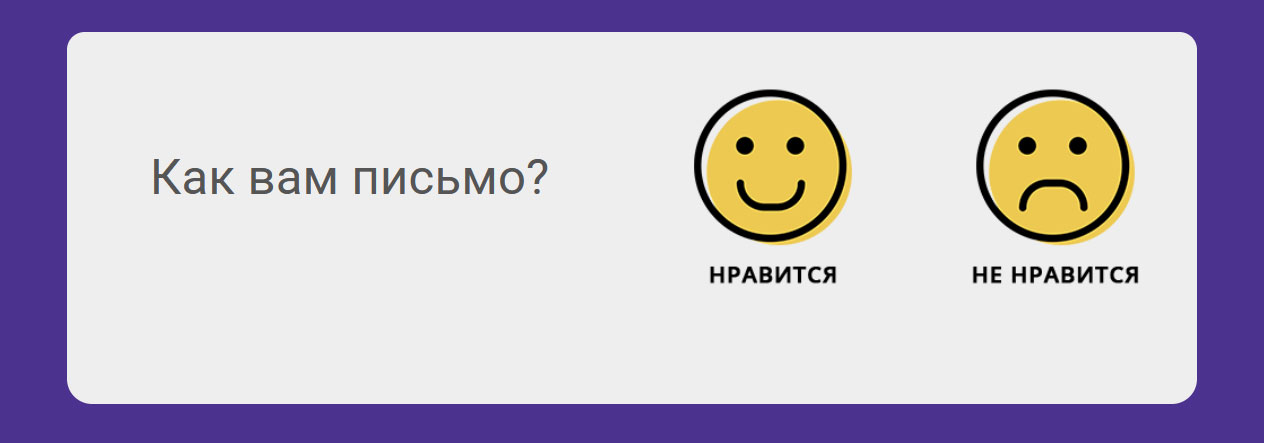 Вы можете сделать это в конце каждого письма, выбрав вариант «Нравится» или «Не нравится». Мы читаем все отзывы и учитываем ваши пожелания. Спасибо, что помогаете нам развиваться!